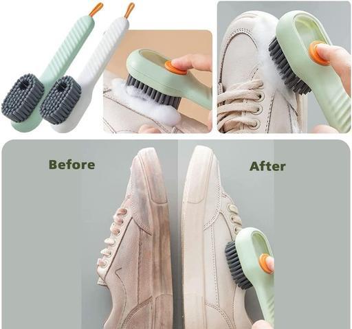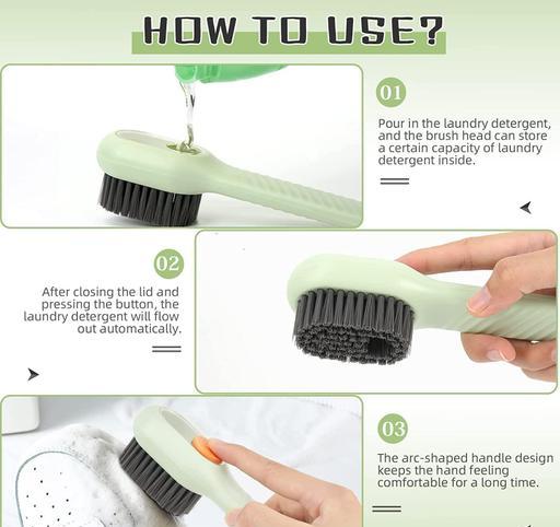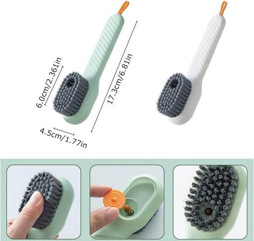 VERSATILE FUNCTIONALITY : This multifunctional cleaning brush features a convenient liquid dispenser, making it suitable not only for shoes but also for cleaning clothes, basins, tables, walls, and more. Its stylish two-color stitching design adds a touch of fashion and beauty to your home. The grey bristles are firmly secured to the brush head, making it your reliable home assistant.EFFORTLESS LIQUID DISPENSING : A simple press of the button allows the brush head to hold a certain amount of laundry detergent. Once covered with the lid, pressing the button behind the detergent ensures a controlled and automatic release, preventing any unnecessary wastage. This clever dispensing mechanism prevents spillage and excessive soap usage.DURABILITY IN DESIGN : The scrub brush boasts tough and bushy bristles that make scrubbing large areas a breeze. It efficiently generates rich foam and effectively tackles hard-to-clean dirt in your bathroom or kitchen. These imported bristles ensure optimal surface contact, making it suitable for fast-tile walls, carpets, and floors.EASY STORAGE SOLUTION : The brush is designed with a lanyard at the back, allowing you to hang it vertically on the wall, ensuring proper ventilation and drying. After use, please make sure it is completely dry. The ergonomically shaped long handle enables you to apply pressure comfortably while scrubbing without straining Country of Origin : India